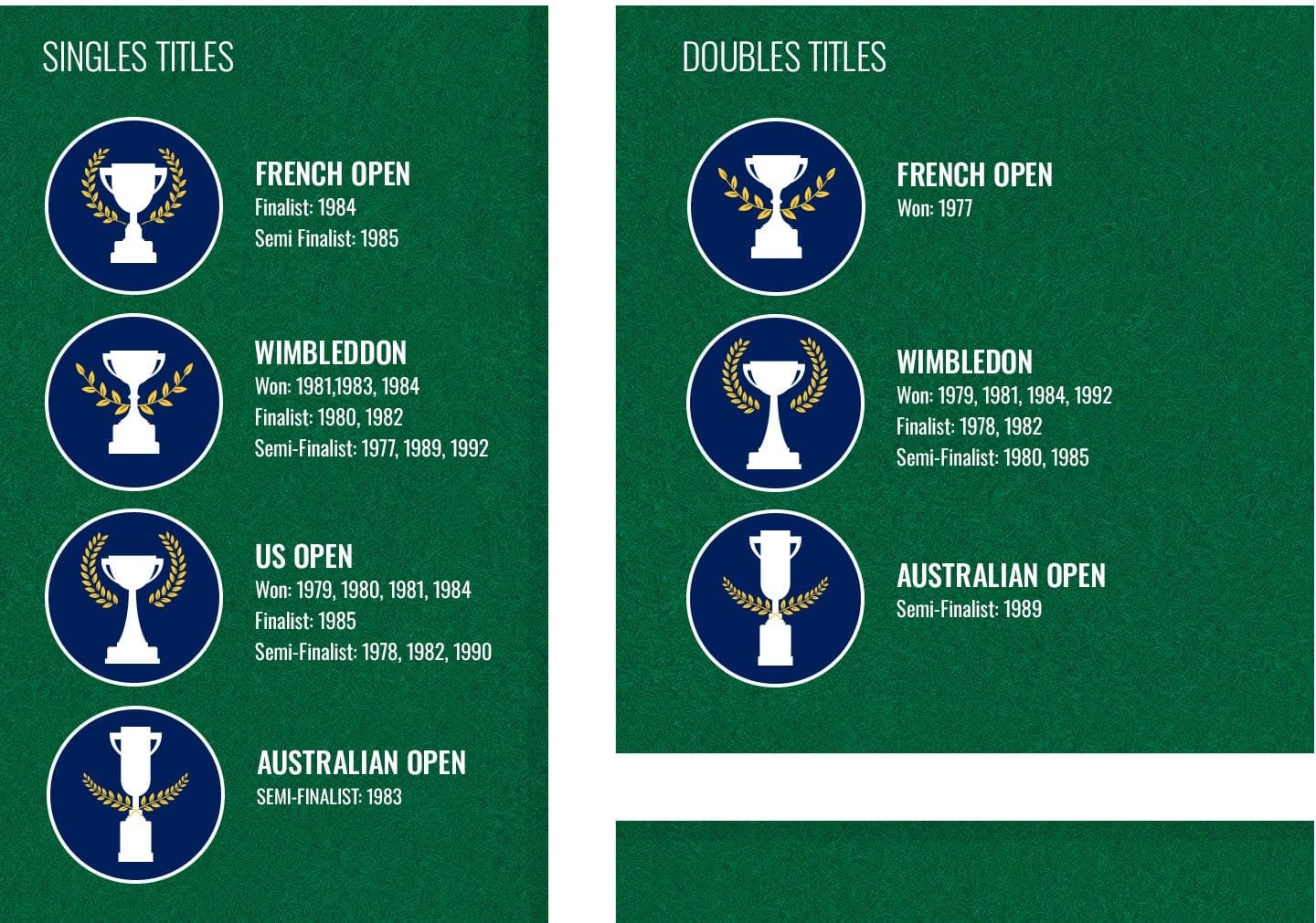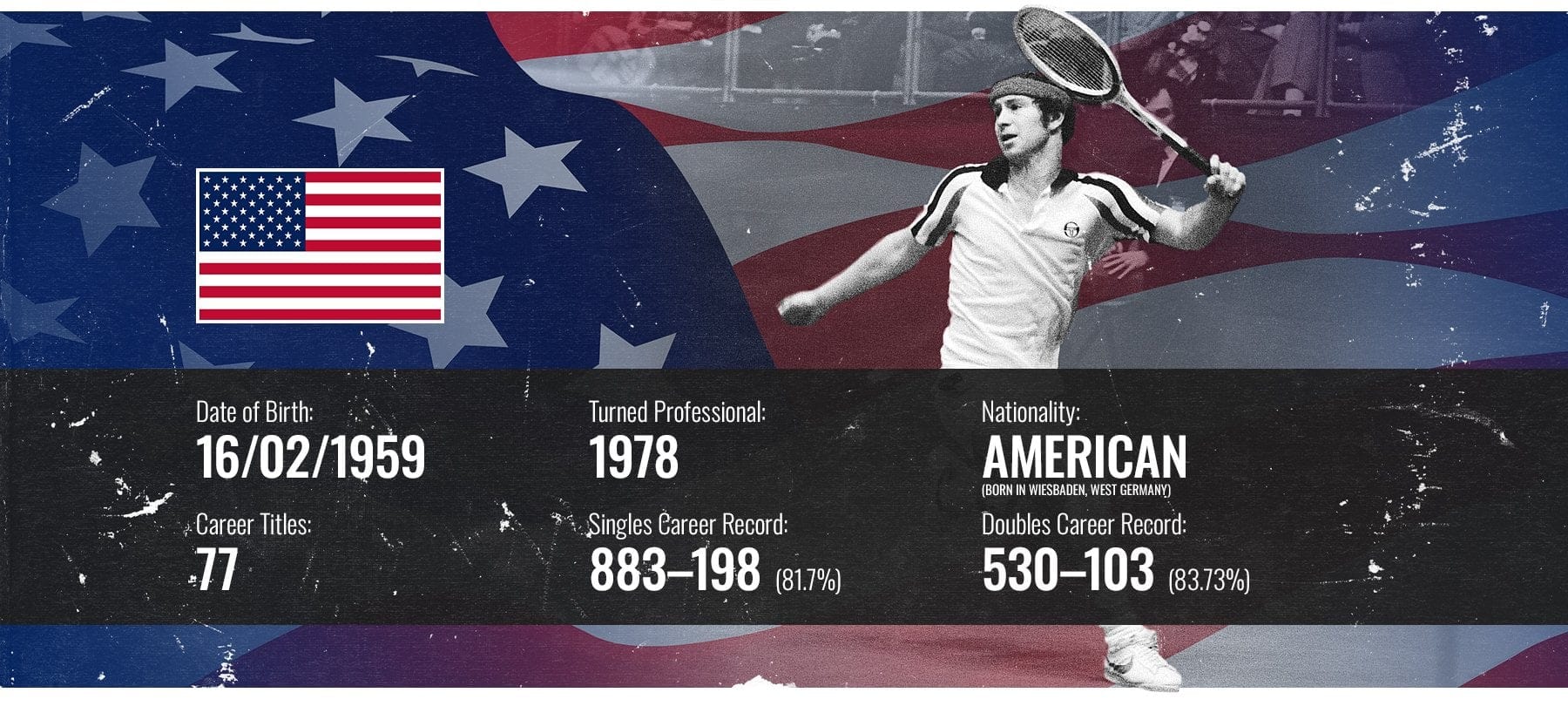 1978 saw him turn pro, and such was his evident talent that he finished 4th in the end-of-year player rankings and signed his first professional endorsement with Sergio Tacchini. 1979 was the start of his winning streak and an Open Era record with 10 Singles and 17 Doubles titles (including Wimbledon Doubles and US Open Singles titles), seeing him finish 3rd in the world rankings.