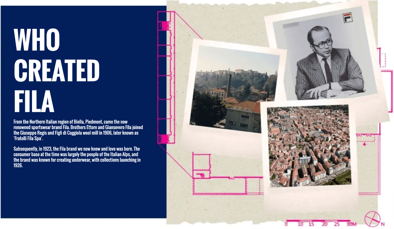 Ellesse was created in 1959 in Perugia, Umbria, Italy, by Leonardo Servadio, an Italian tailor who aimed to combine advanced sports technology with luxurious Italian design.