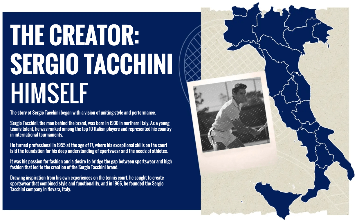 The Sergio Tacchini brand is rich in history and cultural significance, born from the vision of its founder, Sergio Tacchini, in 1966.